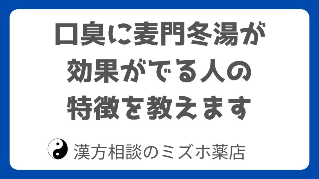 以上、口臭でお悩みの方で麦門冬湯が効果が出やすい人の特徴です。